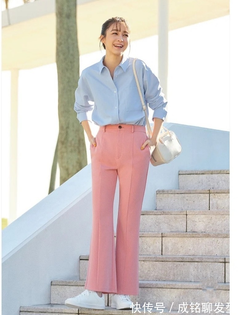 小白鞋和春日的氛围很契合,它能创造出浓浓的清新感,搭配各种颜色的裤装都游刃有余,都没有冲突。