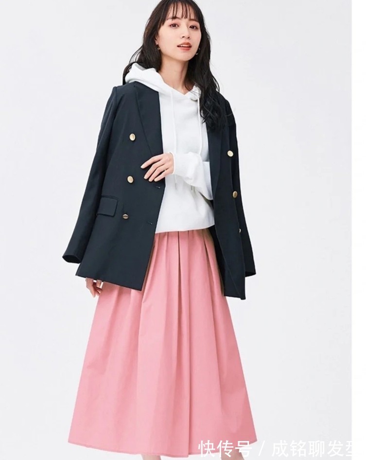 白色卫衣是最减龄的颜色,干净清爽不说,还具备超高的包容性。外套的西装颜色偏深,这种深浅色系的组合,也是大家习惯了的配色手法。卫衣加入几分活力感,打破西装的生硬氛围。